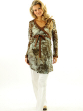Die Tunika mit dem extravaganten Muster ist durchsichtig und durch die Wickeltechnik grössenverstellbar - optimal für eine Schwangere mit wachsendem Bauch. Sie können die Tunika bspw. mit dem Shirt Nadine kombinieren. Auch nach der Schwangerschaft sieht diese Tunika einfach spitze aus.