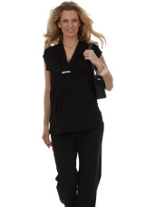 Wunderschöne Bluse für elegante und festliche Anlässe. Die Raffung unter der Brust mit einer dazugehörigen Brosche bringt Ihren Körper besonders schön zur Geltung. Staunende Blicke sind Ihnen gewiss. Erhältlich in den Farben schwarz (-01) und malve (-40)