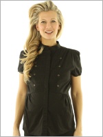 Maya Der kleine Stehkragen und die verdeckte Knopfleiste verleihen der Bluse einen asiatischen Touch. Die zweireihigen Zierknöpfe und Riegel verleihen ihr die besondere Note. An den kurzen Ärmeln ist die Bluse durch einen leichten Gummizug gerafft. 34,95 CHF