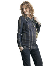 Eine Bluse der ganz besonderen Art. Das hauchdünne Streifenmuster macht Sie schlank. Dieser Effekt wird durch die Grundfarbe schwarz noch verstärkt. Superbequem und trendy zugleich ist diese Bluse aus hochwertigem Gewebe. Durch einen zusätzlichen Elasthan-Anteil passt sich die Bluse jeder Bauchgrösse an, auch wenn der Bauch wieder weg ist. Die Bluse passt besonder gut zu schwarzen Hosen.