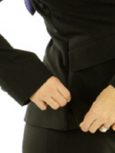 Klassisch eleganter, schwarzer Blazer, wirkt optisch wie ein normaler Blazer, doch seitlich unter den Armen sind zusätzliche Puffer mit versteckten Reissverschlüssen eingearbeitet, die Sie je nach Bauchgrösse variabel öffnen können. Dieser Blazer ist auch für die Zeit nach der Schwangerschaft geeignet. Material: 43% Wolle, 53% Polyester, 4% Elasthan. Auf dem Bild wurde der Blazer kombiniert mit der Hose Diana.