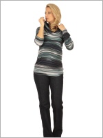 Eve Sehr angenehm zu tragender, leichter Pullover in frischem Ringelmuster. Der grosse Kragen lässt sich individuell drappieren. Mit hohem Elasthan-Anteil für den wachsenden Bauch. 39,95 CHF