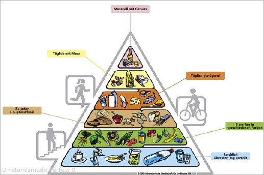 Die Mischung macht’s Worauf Sie während der Schwangerschaft insbesondere achten sollten ist die Zusammensetzung Ihrer Ernährung. Die Ernährungswissenschaft hat in den letzten Jahren eine Reihe von neuen Erkenntnissen gewonnen und daraufhin ihre Empfehlungen für die sinnvolle und gesunde Zusammensetzung unserer Ernährung geändert. So wurde bspw die Ernährungspyramide in den USA komplett umgestellt. Die aktuelle Ernährungspyramide der schweizerischen Gesellschaft für Ernährung als Beispiel empfiehlt generell, wie sich eine gesunde Ernährung für Erwachsene zusammensetzen sollte. Mit einigen Ausnahmen, die wir Ihnen im folgenden auszugsweise erläutern, gelten diese generellen Regeln auch für Schwangere: